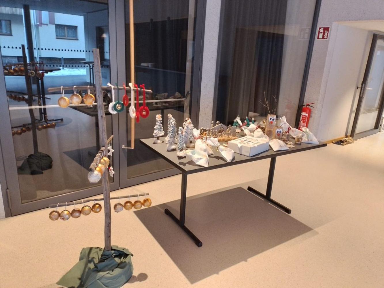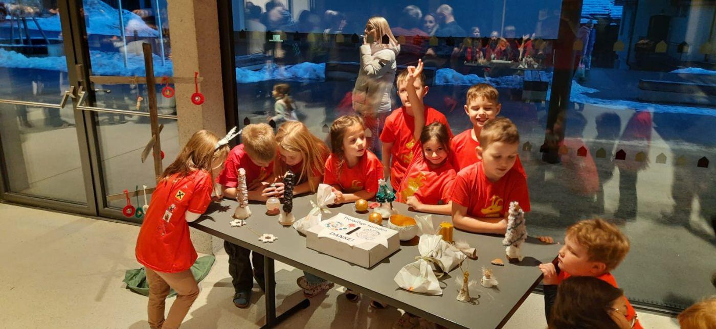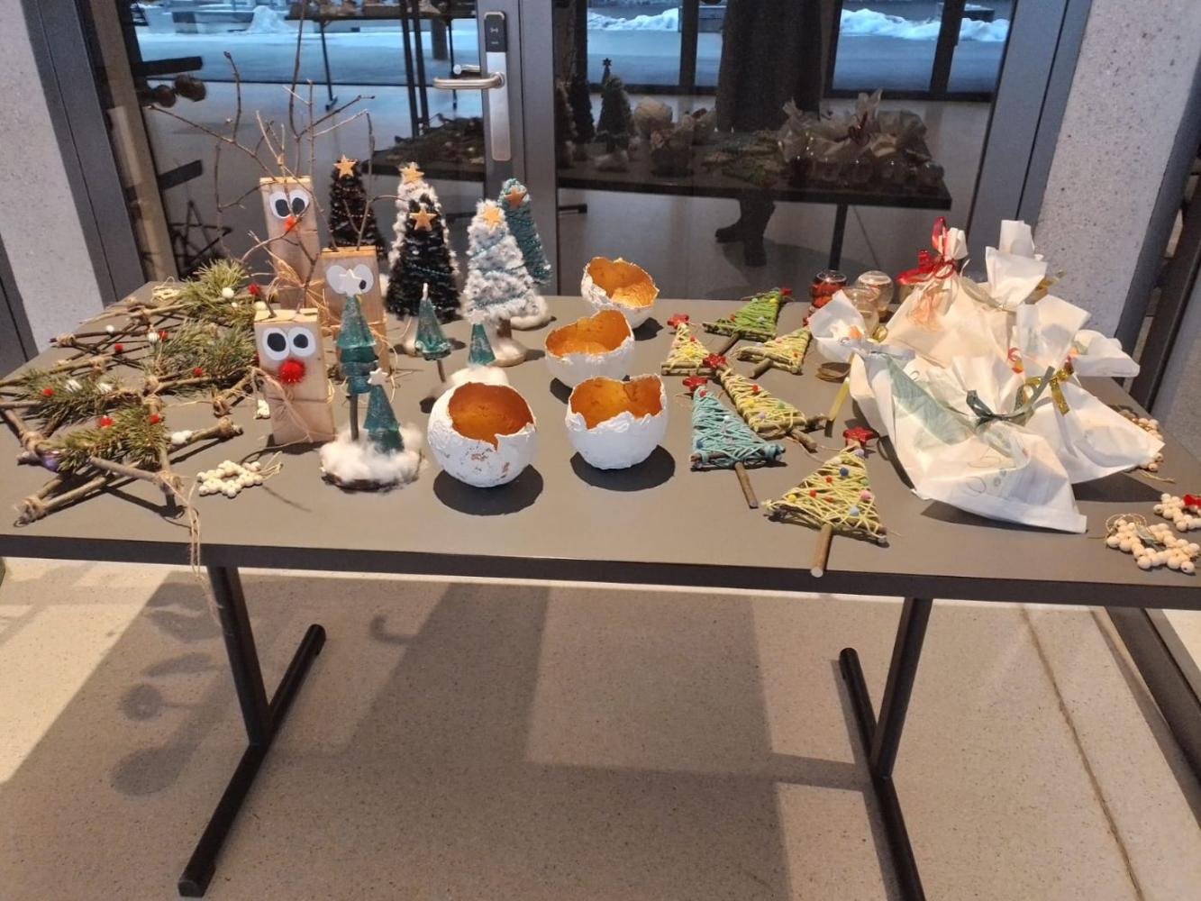 Bereits vor Beginn der Weihnachtsfeier fand im Foyer ein Basar statt. Dort boten die Kinder selbstgebastelte Werke gegen eine Spende für den guten Zweck an – ein schönes Zeichen für Zusammenhalt und Hilfsbereitschaft.