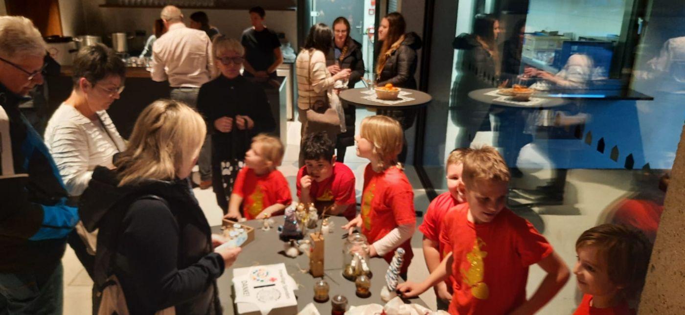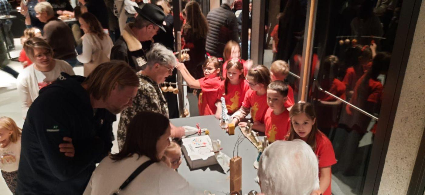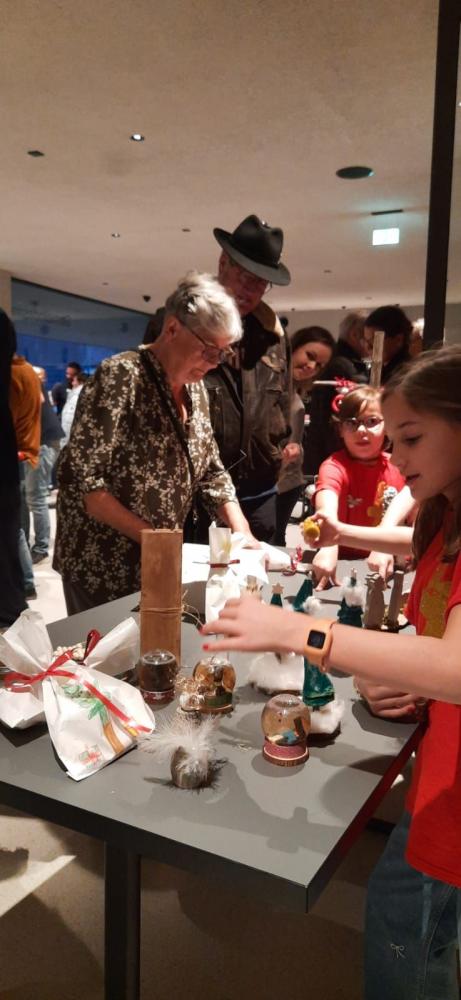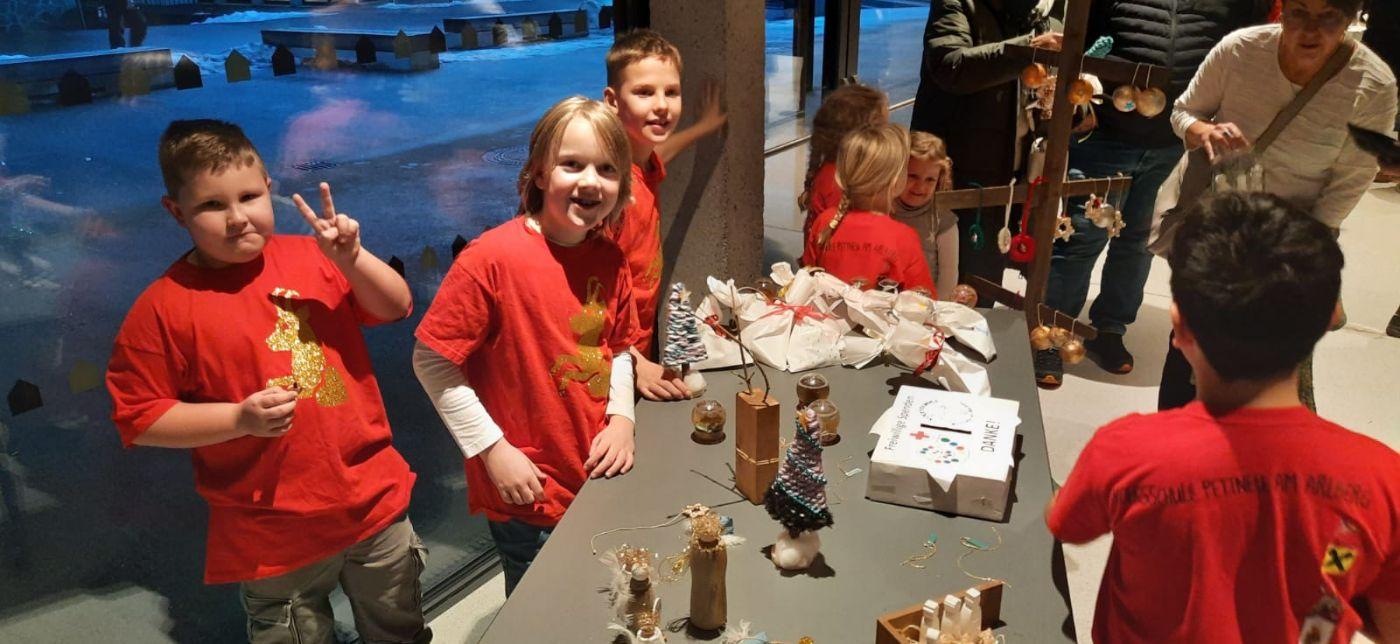 Bereits vor Beginn der Weihnachtsfeier fand im Foyer ein Basar statt. Dort boten die Kinder selbstgebastelte Werke gegen eine Spende für den guten Zweck an – ein schönes Zeichen für Zusammenhalt und Hilfsbereitschaft.